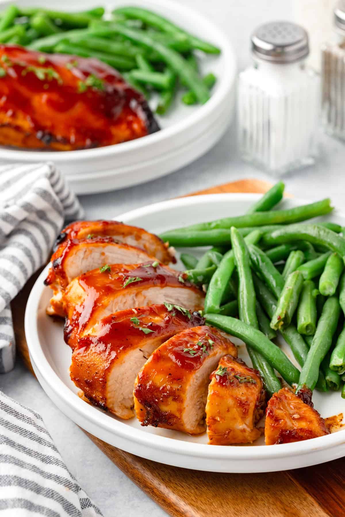 These BBQ chicken breasts are a great main dish to make for weeknight dinners when you’re short on time and want to make an easy recipe for the whole family. Plus, you can serve it with almost anything.
